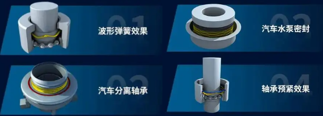 波形弹簧在轴承系统中主要用于施加轴向预紧力,减少轴承游隙并提升稳定性,其典型安装位置位于轴承外圈与端盖之间。